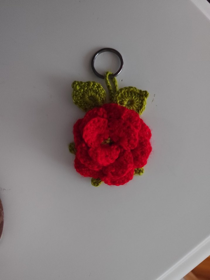 Renkli, örgü kırmızı çiçek ve yeşil yapraklardan oluşan bohem tarzda anahtarlık. Söz, Nişan,Kına, nikah için sipariş alıyorum tarih göre hazırlarım..