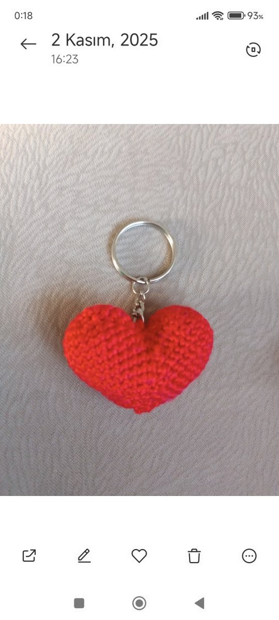 Renkli, örgü kırmızı kalp tasarıma sahip anahtarlık, sade metal halka ile bohem ve rahat bir tarz sunar. ❤️