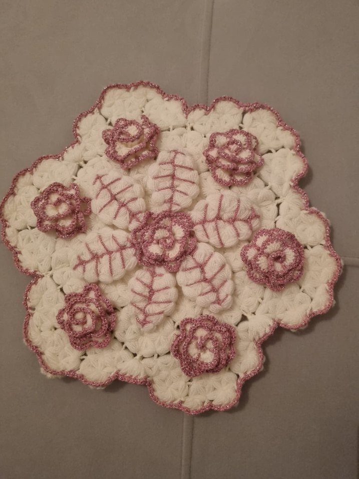 El yapımı, beyaz ve pembe çiçek ve yaprak desenli Sarı olan satılık değildir pembe olan satılık üçlü set