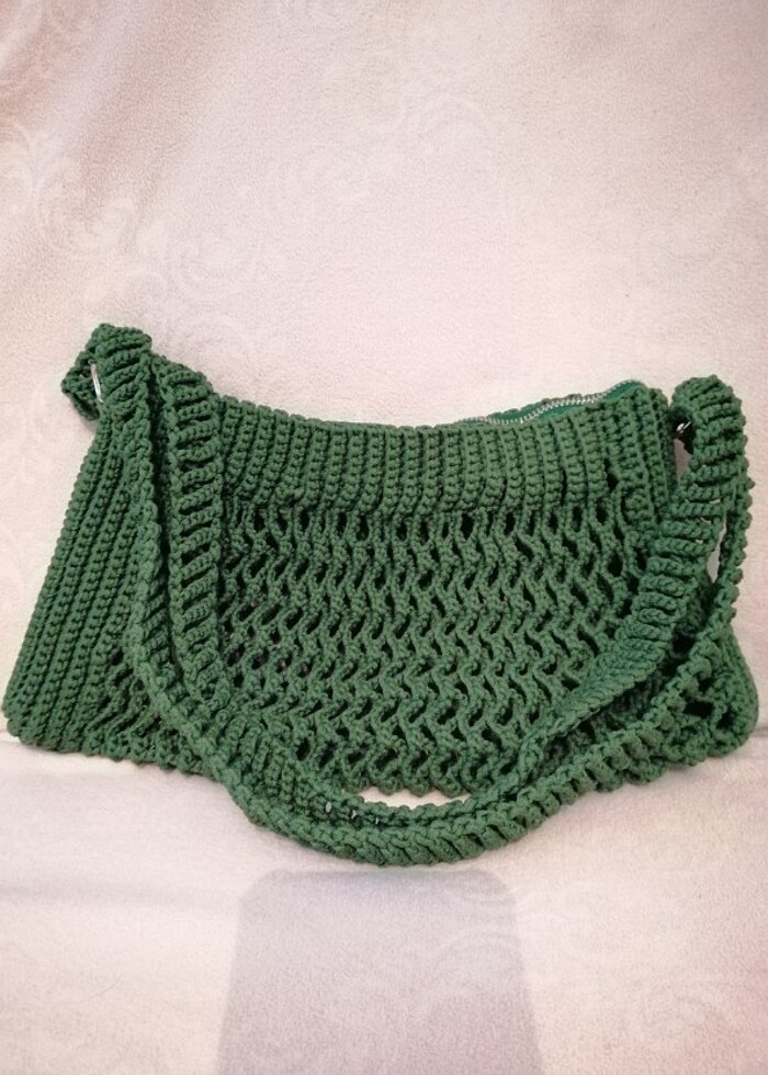 El örgüsü, içi krem rengi astarlı, fermuarlı, askısı 2 ayarda kullanılabilen sıfır çanta.