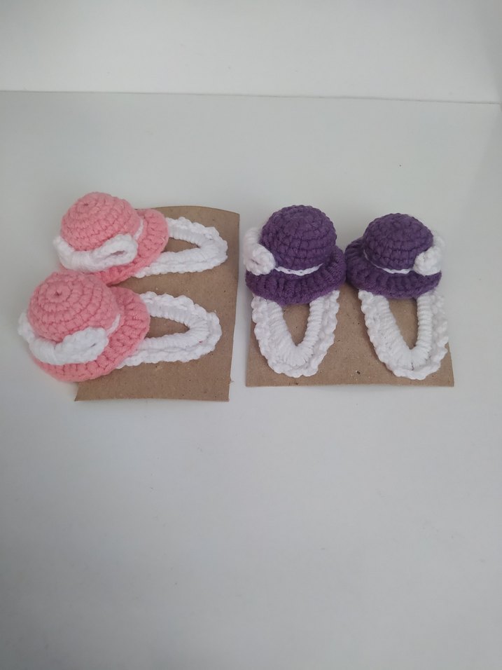Örgü Mor ve Pembe Çocuk Toka Seti