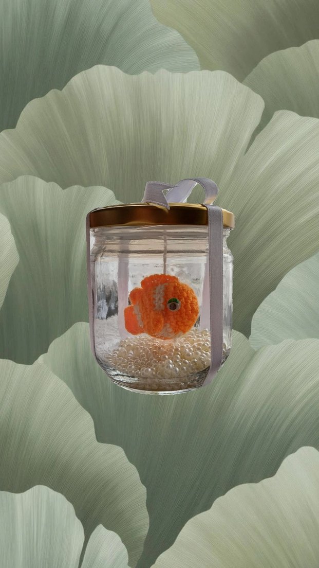 Cam kavanoz içinde turuncu balık figürlü, dekoratif amigurumi Nemo balık. Dory ve nemo seçeneklerimiz mevcuttur. İnci yerine Beyaz kum seçeneğimiz vardır. Sipariş için iletişime geçiniz.