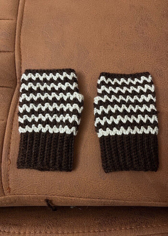 Sıfır el örgüsü bej kahverengi parmaksız eldiven. İstenilen renkte örülür.