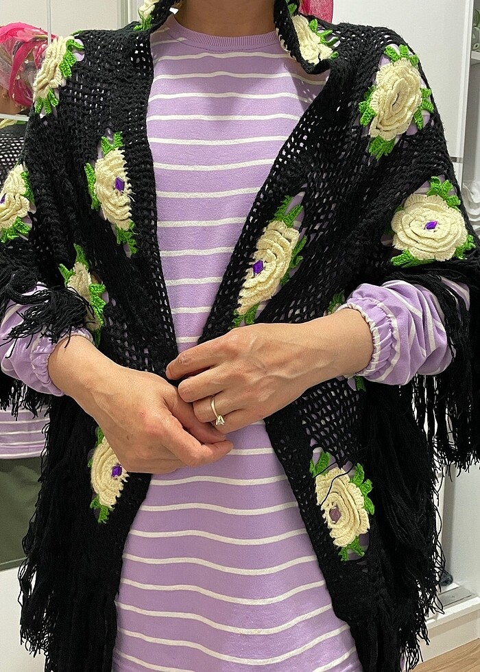 El örgüsü şal çiçeklernde taşlar var yırtılma eskime yok tertemiz
