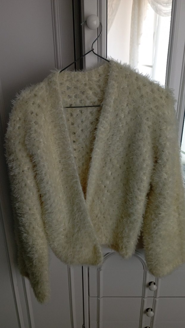 Zaman sarısı renk tavşan kaşmir tüyü ip ile örülmüştür. Çok yumuşacık örgü, salaş kesim bohem tarzda, uzun kollu ve midi boy hırka.