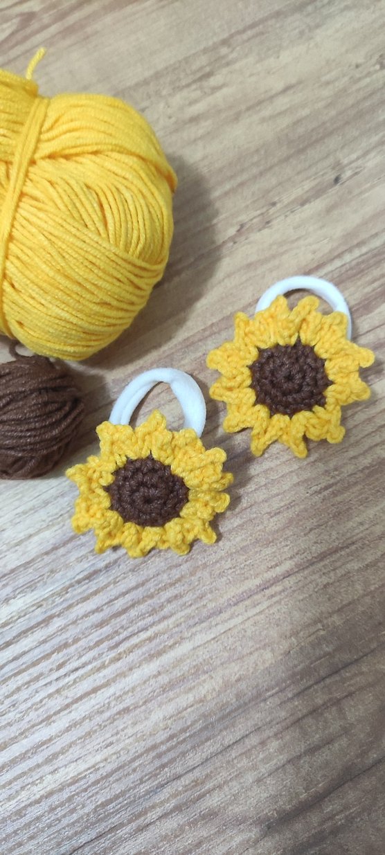 Örgü sarı ayçiçeği desenli saç tokaları, bohem tarz için uygun, renkli ve çiçek desenli şık bir detay sunar.