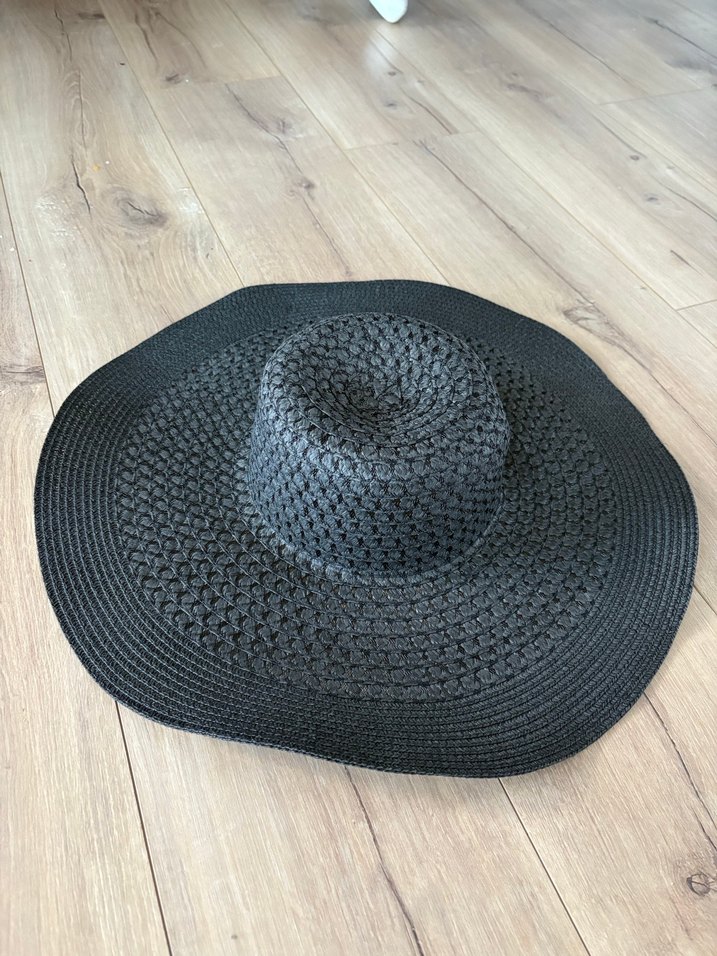 Sentetik kumaştan, geniş kenarlı örgü siyah kadın şapka, bohem ve retro tarzını yansıtıyor.