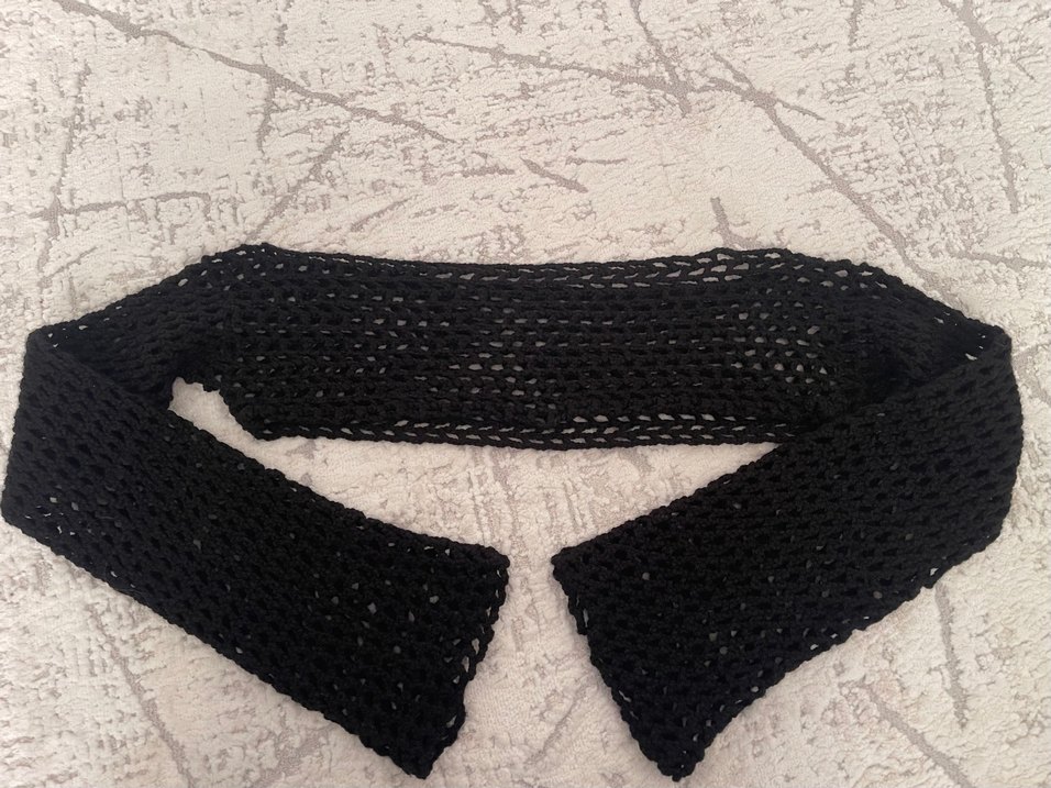 Siyah renkli, gri tonlu ince örgü dokusuyla kadın şalı, rahat ve gotik tarz için uygun bir seçimdir. Cropların üstüne tercih edilir kolları geniş inmektedir.