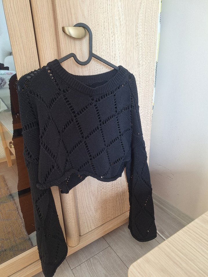 Siyah örgü kumaştan, uzun kollu ve yuvarlak yaka olan bu kazak, rahat kesimiyle gündelik kullanıma uygundur. Gotik tarzıyla dikkat çeker. s-m uyumlu