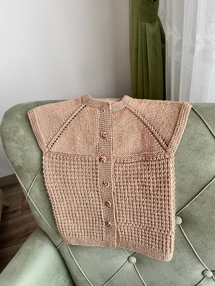 Somon rengi el örmesi bebek yeleği. Işık dolayısıyla soluk görünüyor asıl rengi daha canlı. Fiyat için teklif verebilirsiniz.