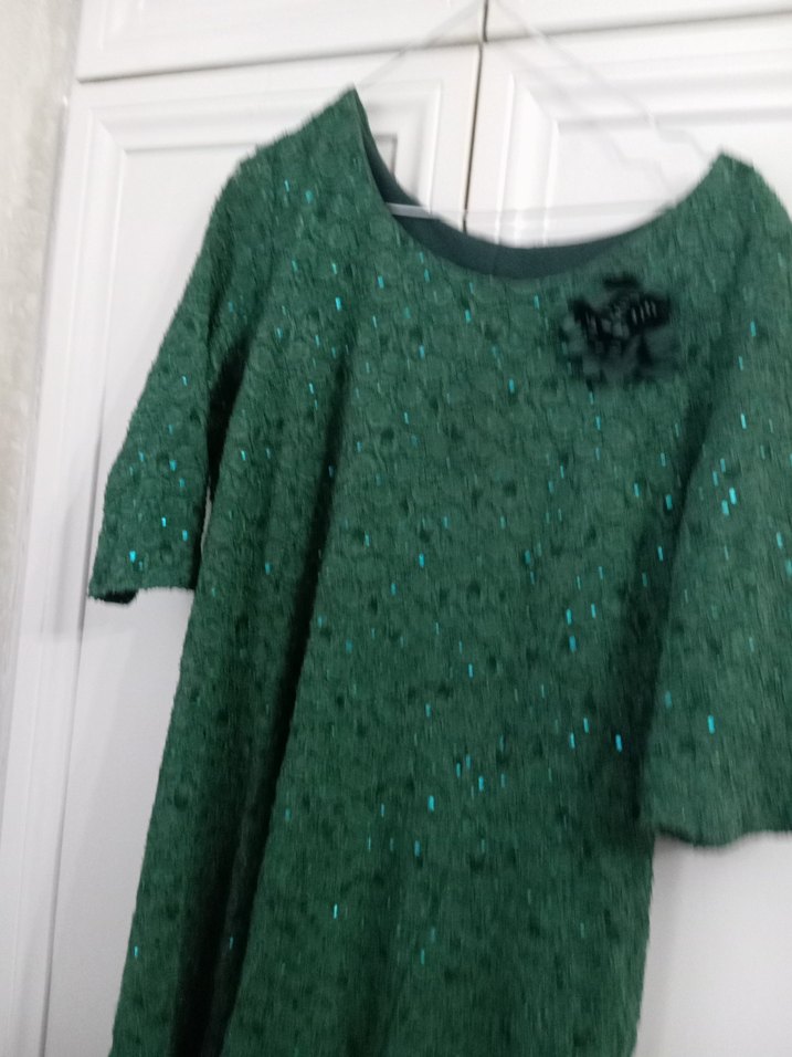 Bu bol kesim hamile tunik, yuvarlak yakalı ve uzun kolludur. Parlak yeşil örgü kumaştan yapılmış, rahat ve şık bir parti tarzı sunar. Midi boyu şık bir dokunuş katar.