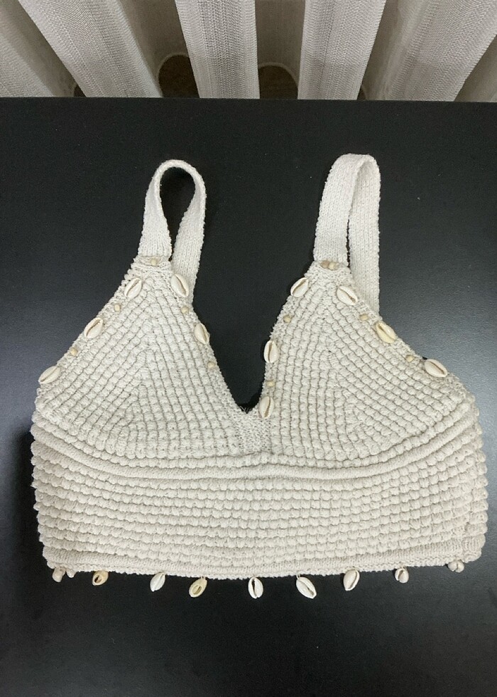 örgü yazlık deniz kabuğu detaylı büstiyer