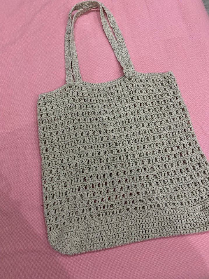 Örgü yazlık çanta el örgüsü krem rengi bej