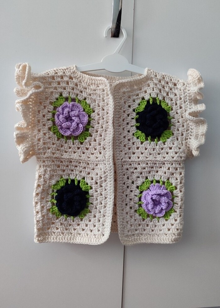 son moda çiçekli kroşe kız çocuk yelek. 1-3 yaşlar için siparişe özel hazırlanır. çiçek renklerinde değişiklik yapılabilir. #yelek #örgü #zara #kids #çiçek #süveter #alize #nako #örenbayan #lcw #kazak
