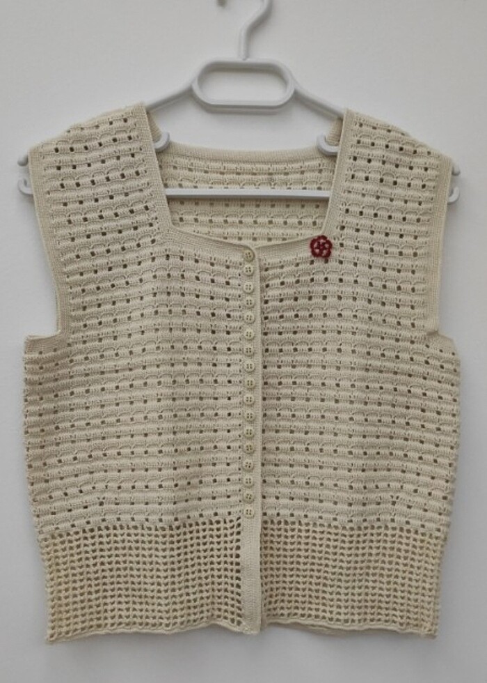Yelek ince pamuk ipliğiyle tığla yeni örülmüştür.s ve m