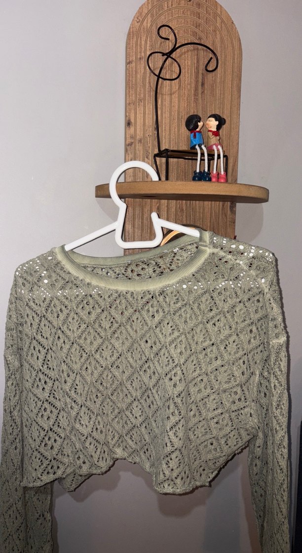 Örgü yeşil delikli tarz kazak (yepyeni)