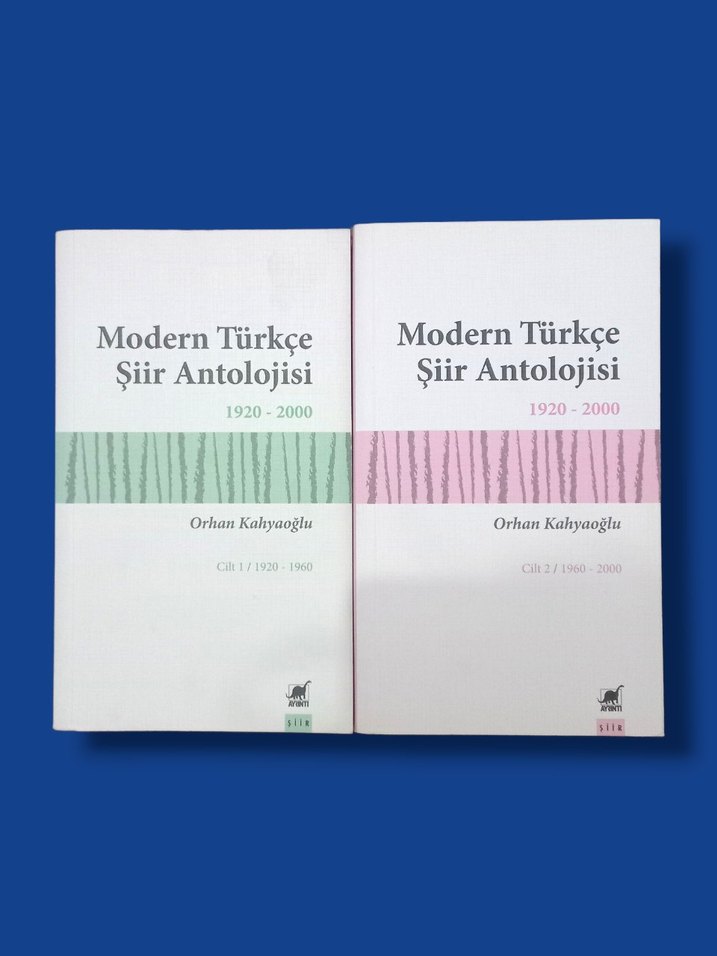 Orhan Kahyaoğlu'nun 1920-2000 yılları arasını kapsayan Modern Türkçe Şiir Antolojisi, 2 cilt halinde şiir koleksiyonu içerir. içerisinde bilgilerle birlikte şiirler vardır. Sadece 1. kitabı okudum ve güzel olduğunu düşündüğüm birkaç şiiri fosforlu kalemle çizdim. Diğer kitabı okumadığımdan dokunmadım