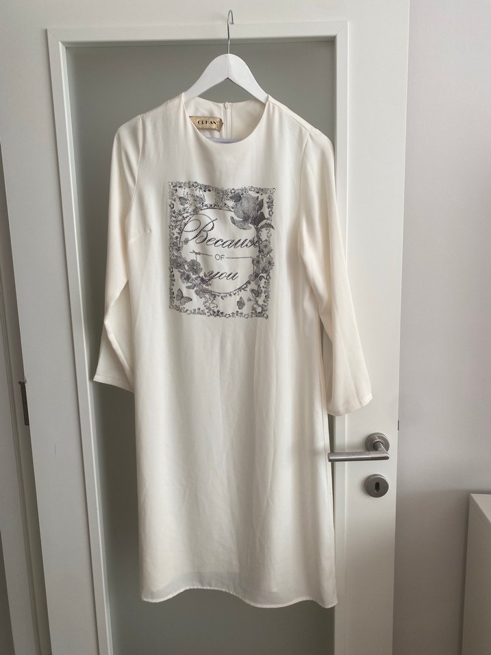 Kadınlar için uzun kollu, bol kesim ve ipeksi dokulu tunik. Yuvarlak yaka ve önünde baskılı desen, hafif gri tonlarda drapeli stil, günlük kullanım için uygun. ÜRÜN ORJİNAL SIFIR VE SORUNSUZ İTİRŞL TİRİL KIRIŞMAZ DÖKÜMLÜ SATENİMSİ KUMAŞ