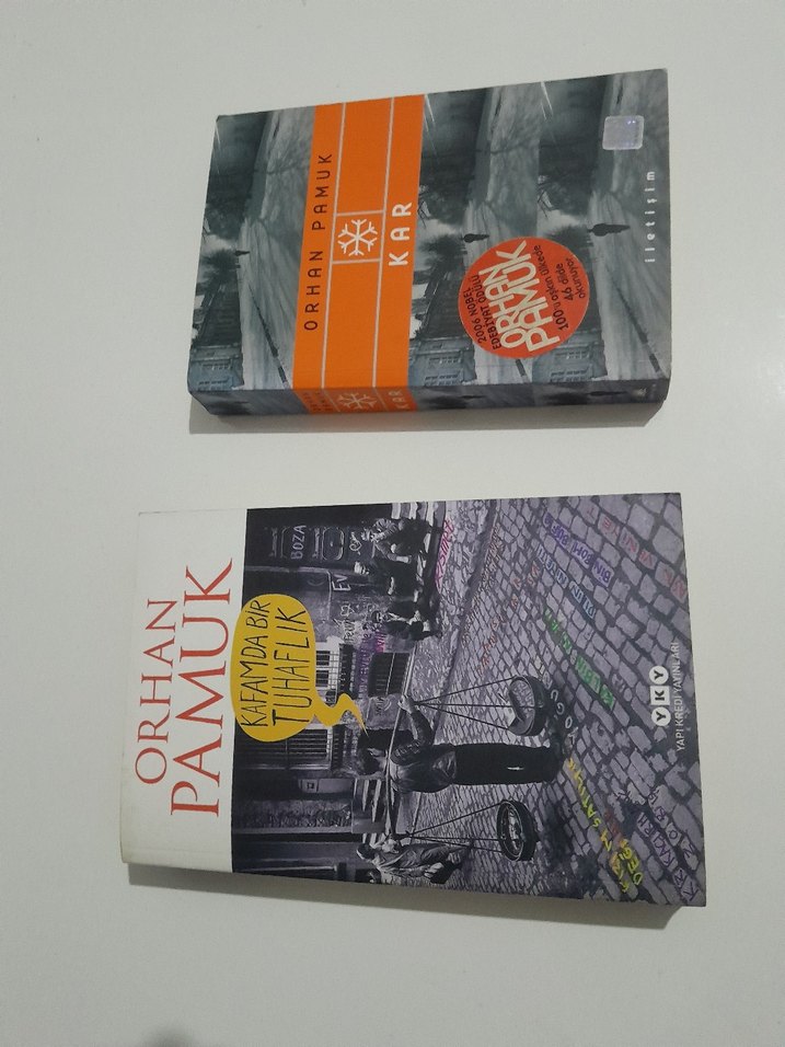 Orhan Pamuk'un "Kar" ve "Kafamda Bir Tuhaflık" adlı romanları, farklı kapak tasarımlarıyla. Ayrı ayrı sa satılır ilan açılır Kar 400 Kafamda bir tuhaflık 300
