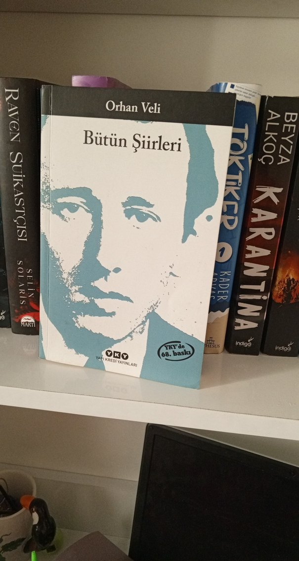 Orhan Veli'nin tüm şiirlerini içeren "Bütün Şiirleri" kitabı, sade kapak tasarımı ve portre illüstrasyonuyla dikkat çekiyor.