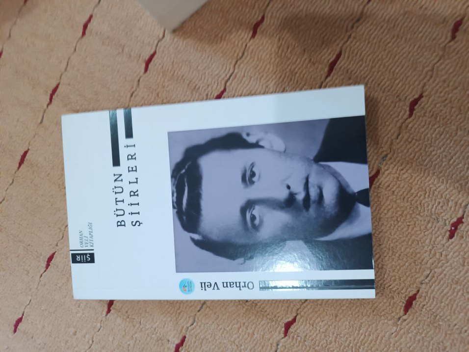 Orhan Veli'nin siyah beyaz portresi bulunan "Bütün Şiirleri" adlı şiir kitabı.