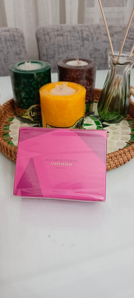 Oriflame All or Nothing Amplified kadın parfümü, pembe kutusunda, cesur bir koku deneyimi sunar.