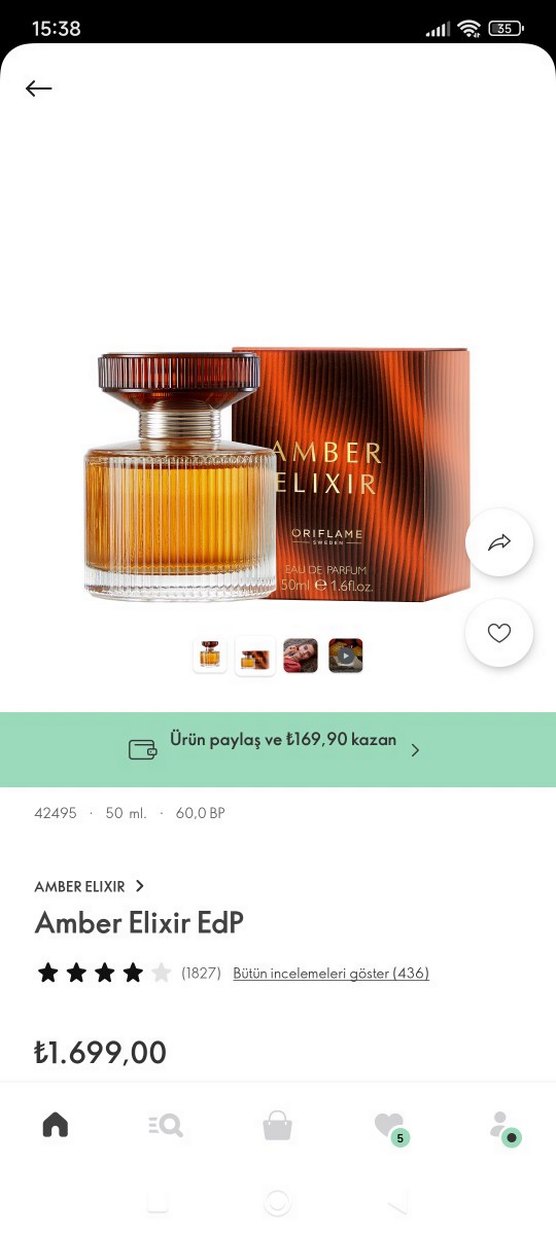 Oriflame Amber Elixir EdP, 50ml şişede sıcak ve zengin amber kokusuyla kadınlar için tasarlanmış bir parfümdür.