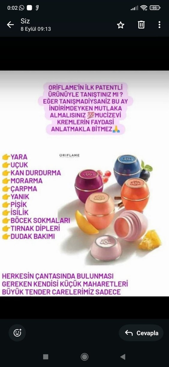Oriflame'in patentli, çok renkli dudak bakım kremleri; yara, morarma, yanık ve böcek sokmalarına karşı koruma sağlar. Herkesin çantasında bulunmalı.