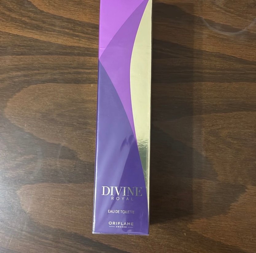Oriflame Divine Royal Eau de Toilette, zarif mor ve altın renkli ambalajında özel bir koku deneyimi sunar.