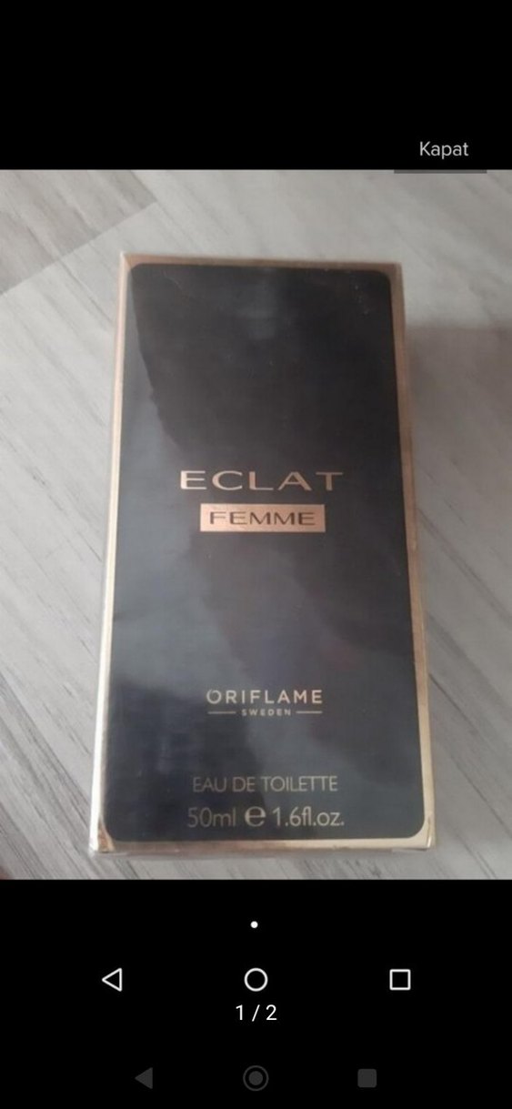 Oriflame Eclat Femme kadınlar için 50ml Eau de Toilette. Şık siyah ve altın renkli ambalajda İsveç yapımı klasik parfüm.