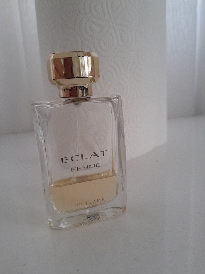 Oriflame Eclat Femme, altın renkli kapaklı şeffaf cam şişede kadın parfümüdür. Hafif ama kalıcı kokulu meyvemsi kokusu var, bilen bilir kokusunu, astımdan dolayı kullanamadım