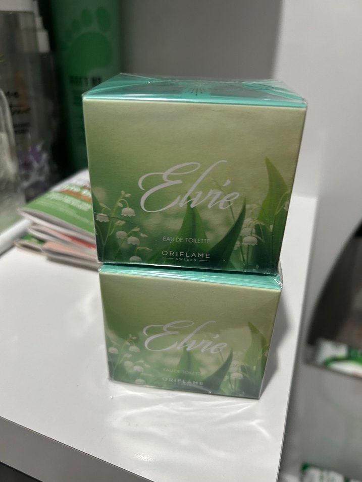 Oriflame Elvie kadın parfümü, ferah ve çiçeksi kokuya sahip, şık yeşil kutuda. Eau de toilette.