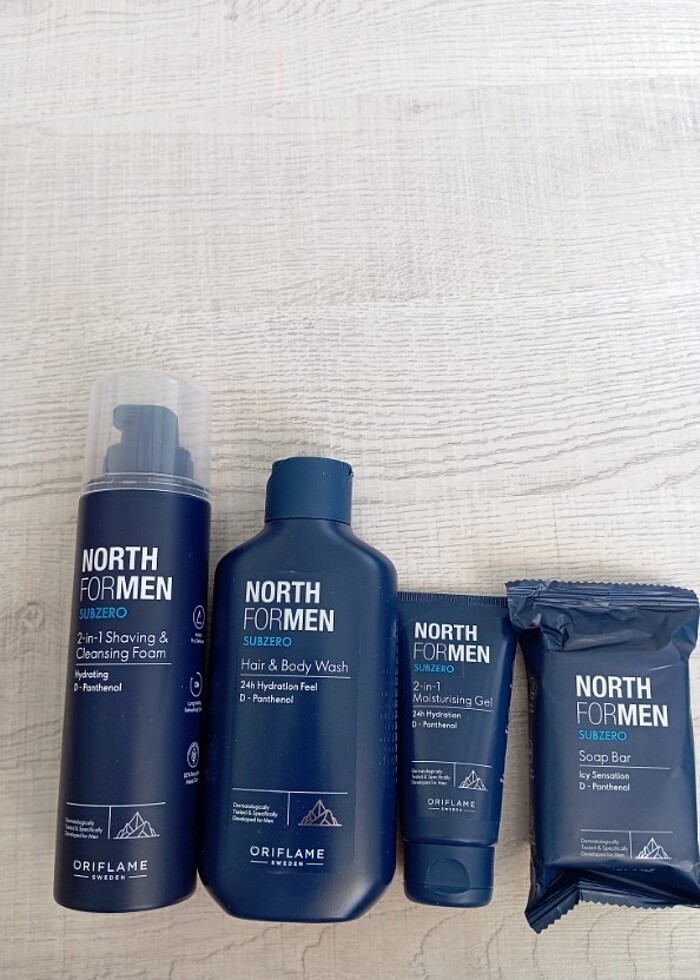 1 adet saç ve vücut Şampuanı, 1 adet traş ve temizleme köpüğü, 1 adet Traş sonrası krem, 1 adet sabun vardır. 2'si 1 arada traş ve temizleme köpüğü nün kolay kaydırma özelliği vardır. İçerisinde ki D-pantenol ile cildin daha nemli ve canlı görünmesini sağlar. 2'si 1 arada nemlendirici jel, 1 adet sabun ile cildini 24 saat nemlendirir. Sabun ise kalıcı bir ferahlık sağlar. Son kullanma tarihleri 08/2027. #oriflame#sabun#jel#traş#köpük#erkek#hediye