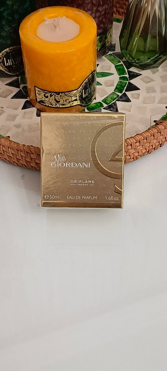 Oriflame Giordani kadınlar için 50 ml (1.61 oz) uzun süre kalıcı eau de parfum, şık altın renkli şişede sunulur.