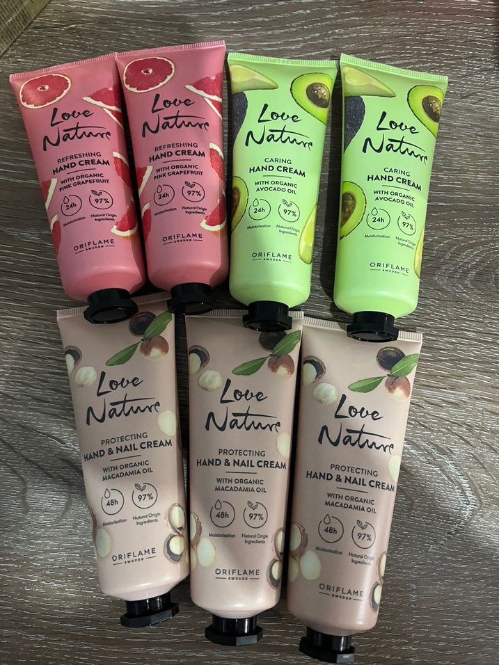 Organik avokado ve makadamya yağları içeren Oriflame Love Nature el ve tırnak kremleri, 48 saate kadar nem ve koruma sağlar.
