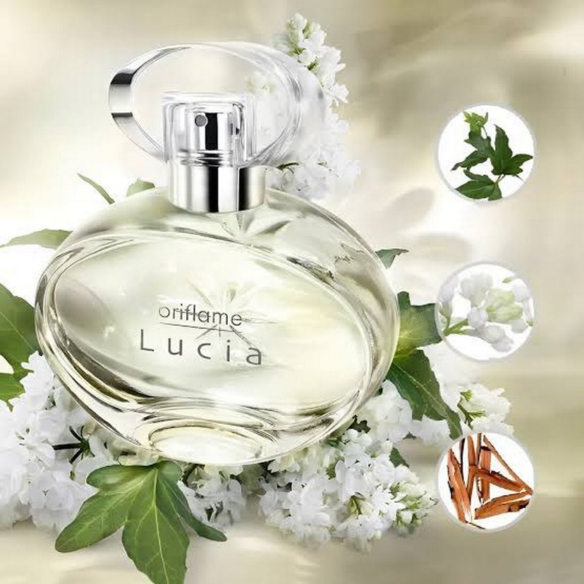 Oriflame Lucia kadın parfümü, şeffaf ve zarif şişesiyle çiçeksi ve odunsu notalar sunar. Ferah ve doğal bir koku sağlar.