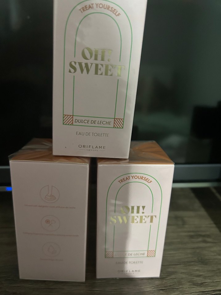 Oriflame Oh! Sweet Dulce de Leche kadınlar için tatlı, karamel esintili eau de toilette. Yumuşak pastel tonlarda, altın detaylı ambalajıyla dikkat çekiyor.