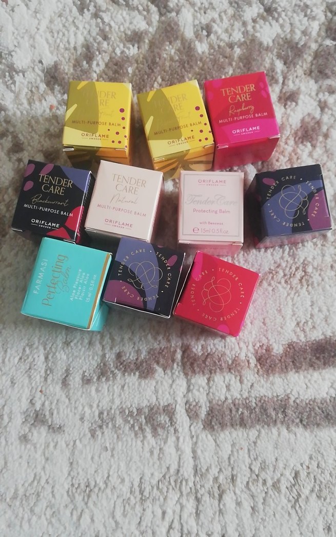 Oriflame Tender Care çok amaçlı balm seti, farklı kokularda ve renklerde, cilt bakım ve koruma sağlar. Tane fiyatıdır