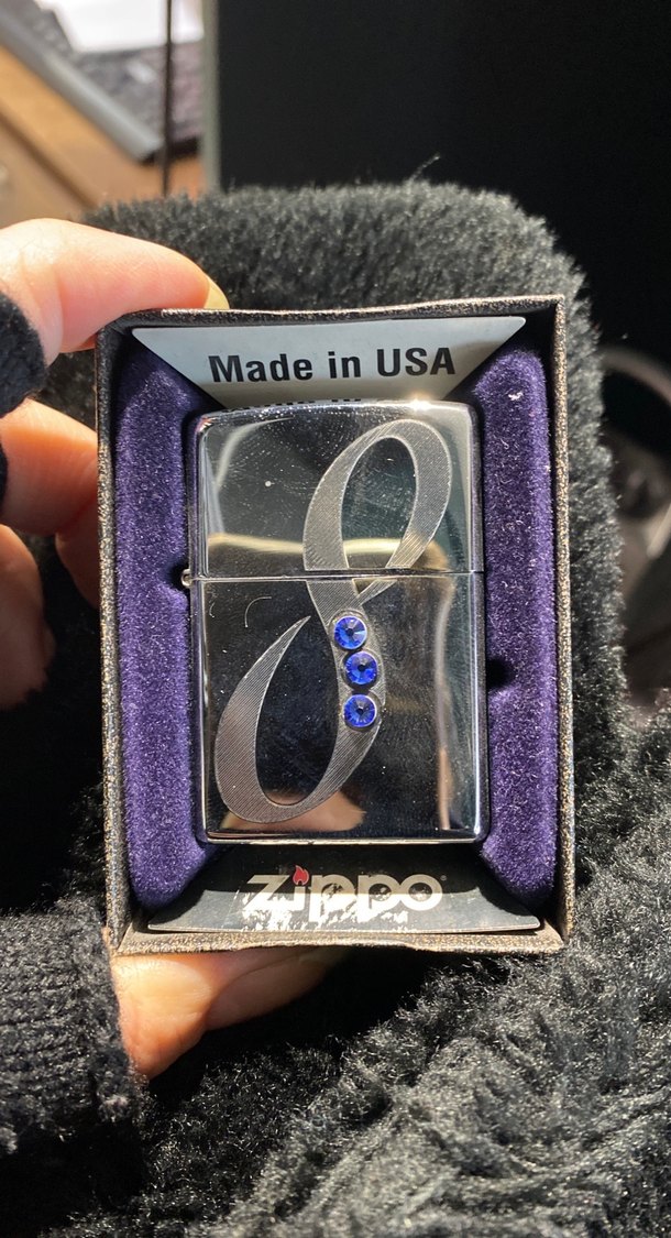Bu erkek yüzüğü, koyu renkte ve üç mavi taşlı çağdaş tasarıma sahiptir. Vintage tarzındadır ve Made in USA damgalıdır.