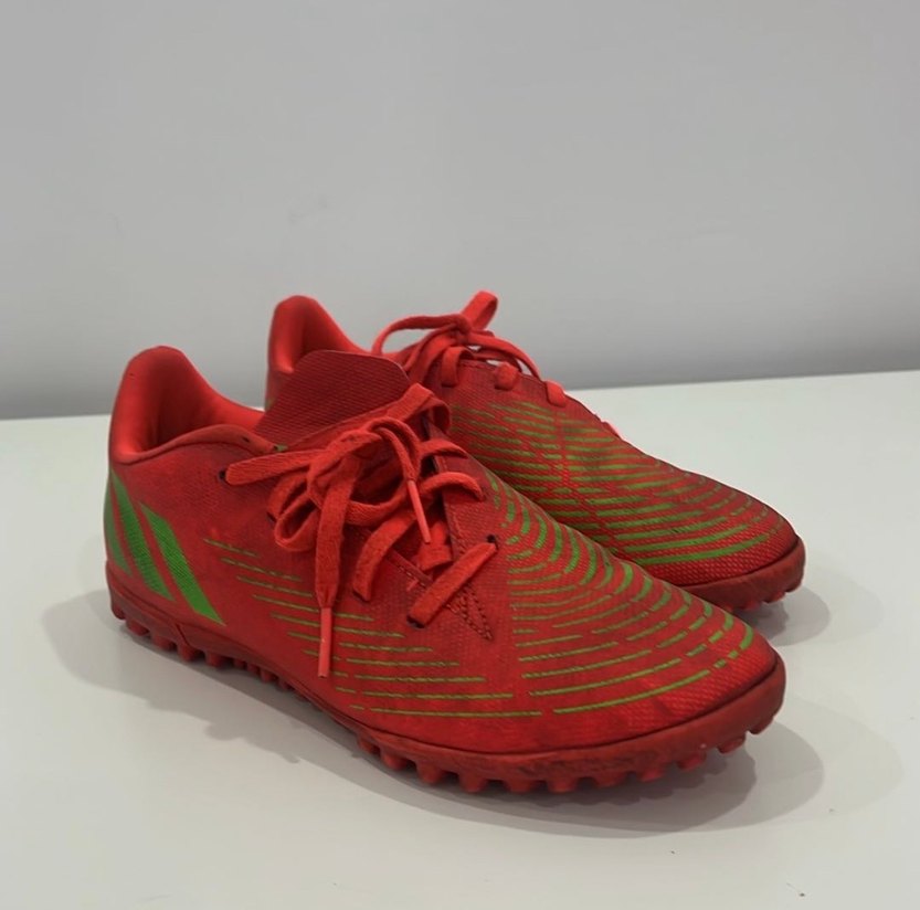 Orijinal Adidas Kırmızı, bağcıklı erkek futbol ayakkabısı. Kauçuk malzemeden üretilmiş, spor için renkli ve sokak stiline uygun. ⚽