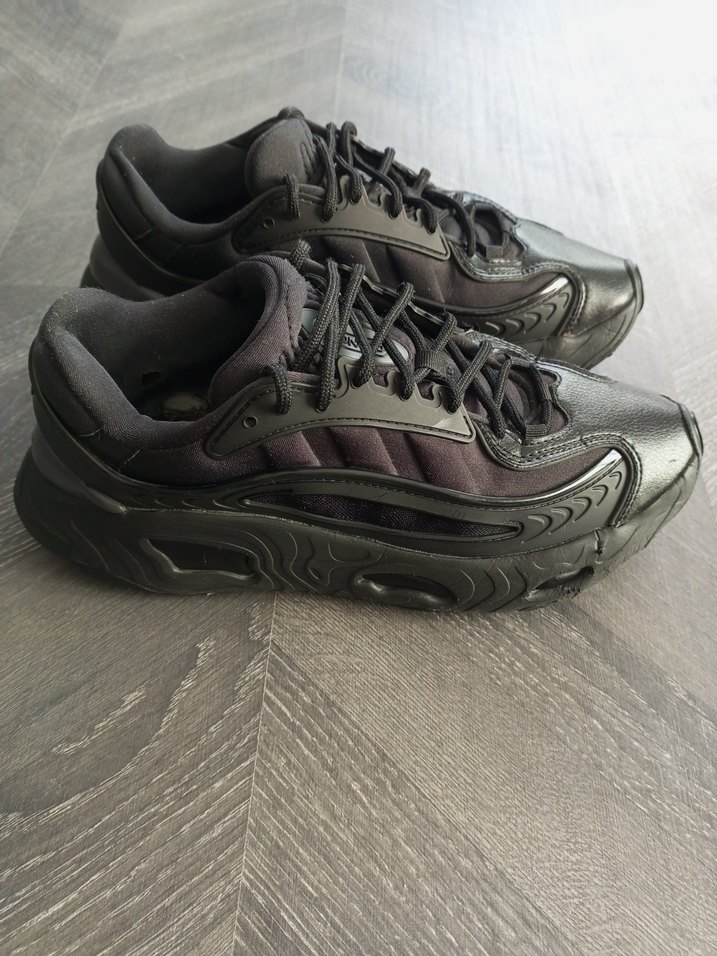 Siyah bağcıklı ve stiletto topuklu kadın spor ayakkabısı, kauçuk tabanlı, sportif ve sokak tarzını bir araya getiriyor. orijinaldir oznova adiplus