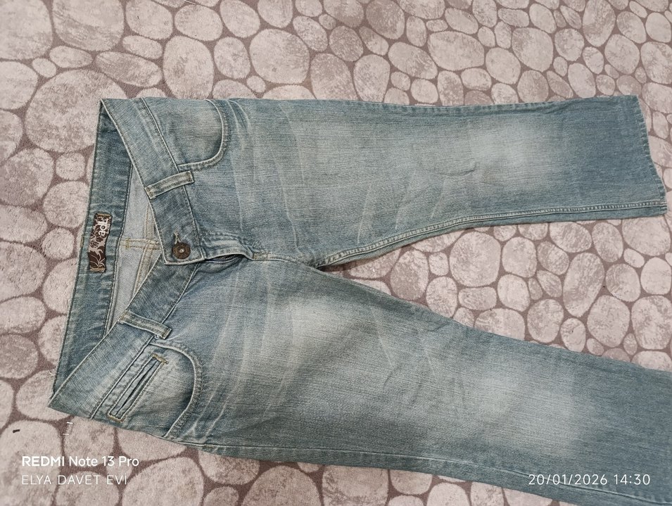 pazarlık olur Gri renkte, düğmeli ve salaş kesim midi boy kot pantolon. Günlük kullanım için rahat ve trend sokak stili sunar.