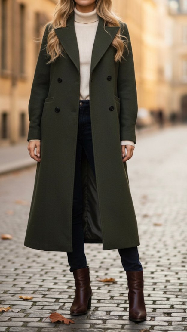 Uzun, koyu yeşil renkte çift düğmeli ve klasik yakalı kaban. Düz dokusu ve şık kesimiyle dikkat çeker. Kolları, hafif balon kollu. #adilışık #adl #adlkaban #adilışıkkaban #uzunkaban #yeşiluzunkaban #kaşe #kaşekaban #yeşil #koyuyeşilkaban #koyuyeşiluzunkaban #mango #zara #