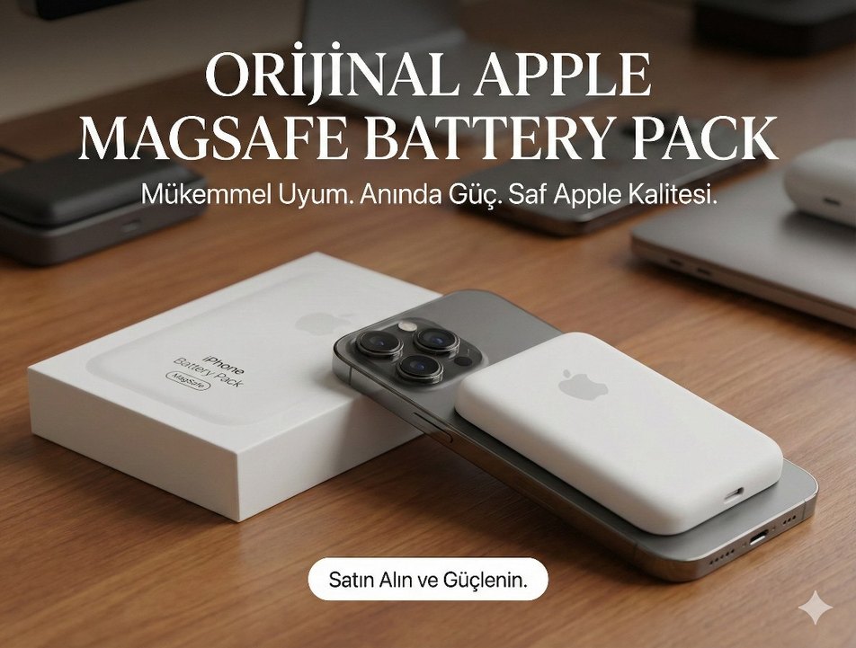 Apple cihazlarıyla uyumlu beyaz power bank, güvenli pil teknolojisiyle anında güç sağlar. Orijinal Apple tasarımıyla.