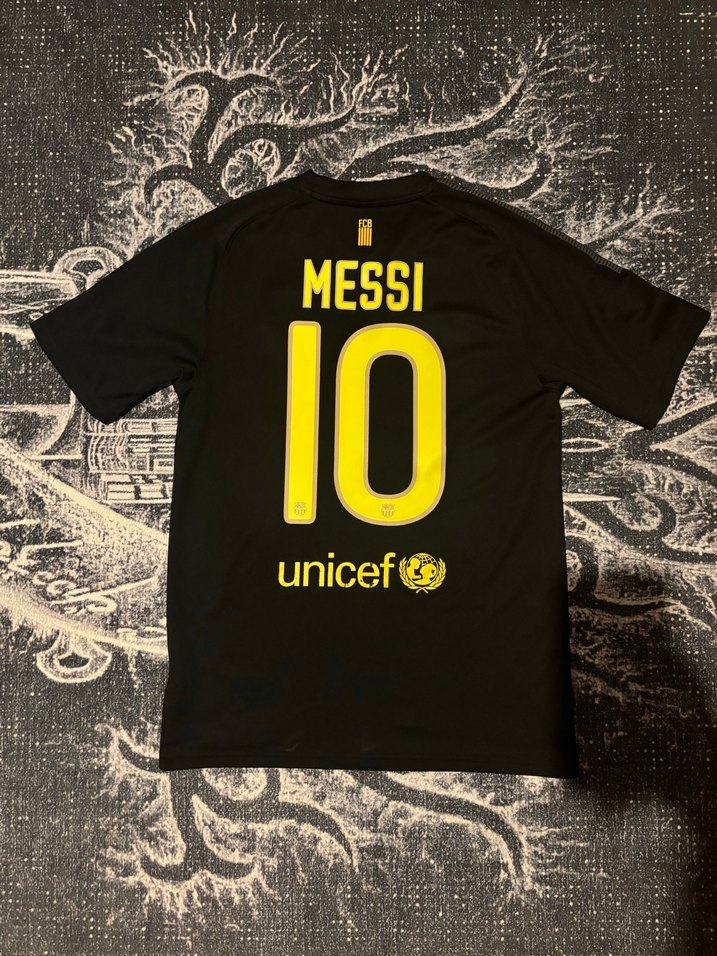 Barcelona’nın 2011/12 sezonu deplasman forması. Messi bakılı. Orijinal ürün iç etiketi görsellerde mevcut. Messi’nin tüm kulvarlarda tam 73 gol atarak insan üstü bir performans gösterdiği sezona aittir bu anlamda koleksiyon değeri yüksektir. Sırt kısmında unicef yazısında çatlama mevcut bunun dışında mükemmel kondisyondadır. Ölçüleri En:47 Boy:71 S Beden