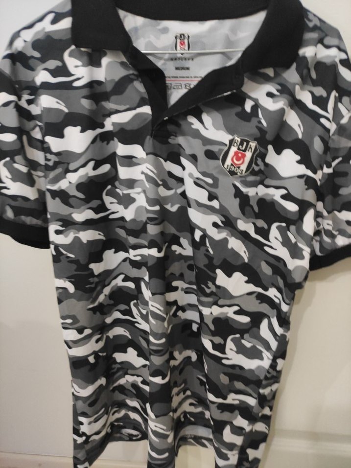 Orijinal Beşiktaş Gri Kamuflaj Desenli Erkek yakalı Tişört