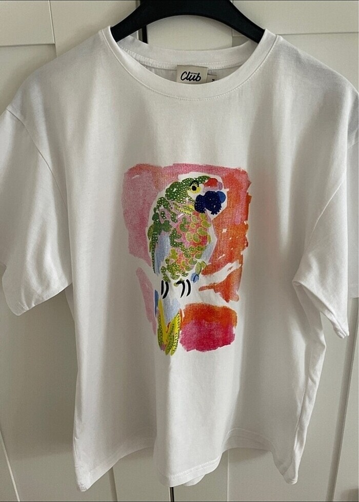 Yeni sezon papağan detaylı taşlı t-shirt. Sadece 3-4 kere giyildi