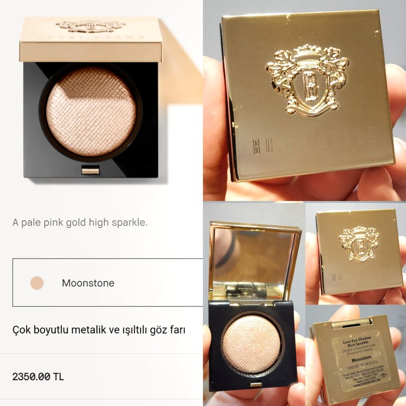 Bej renkli, parlak moonstone altın ışıltılı göz farı. Metalik ve ışıl ışıl bir görünüm sağlar. Kompakt kutuda ayna bulunur. ✨ Yeni alindi sadece denendi ürün doludur ve gramajı çok yüksek normal farlar 1 gram bile değilken ürün 2,5 gram uzun süre yetecektir.