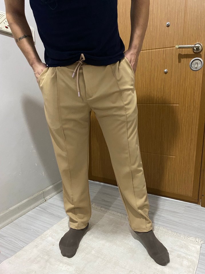 Camel renginde sıfır ürün. Fotoğraf çekip satışa koymak için giyildi. Salaş ve beli lastikli. M beden giyen birisine bile oluyor. Bedene takılmayın