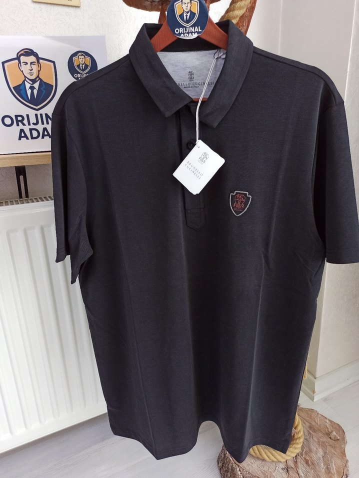 Orijinal Brunello Cucinelli antrasit erkek polo tişört, premium giyinmek isteyenlere.